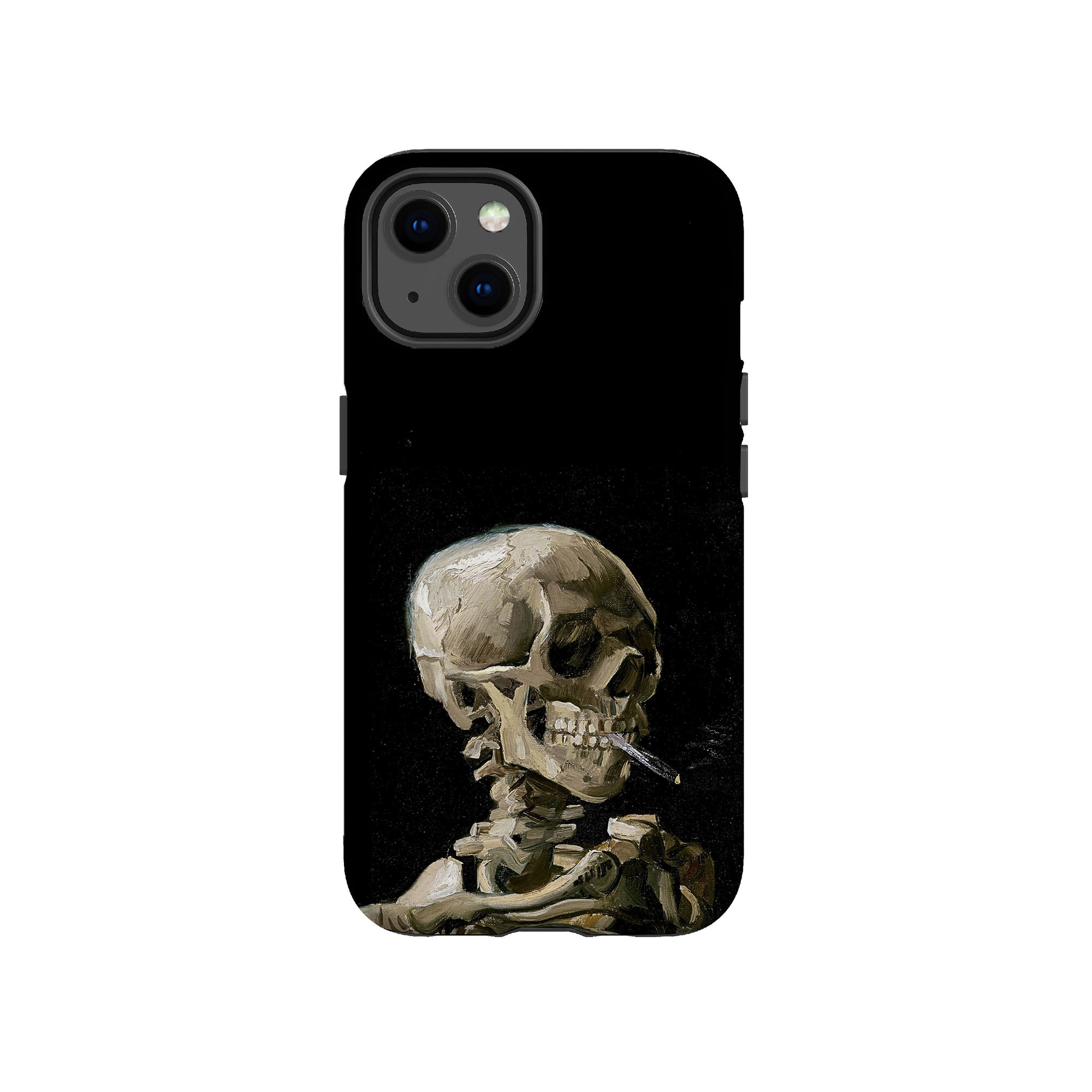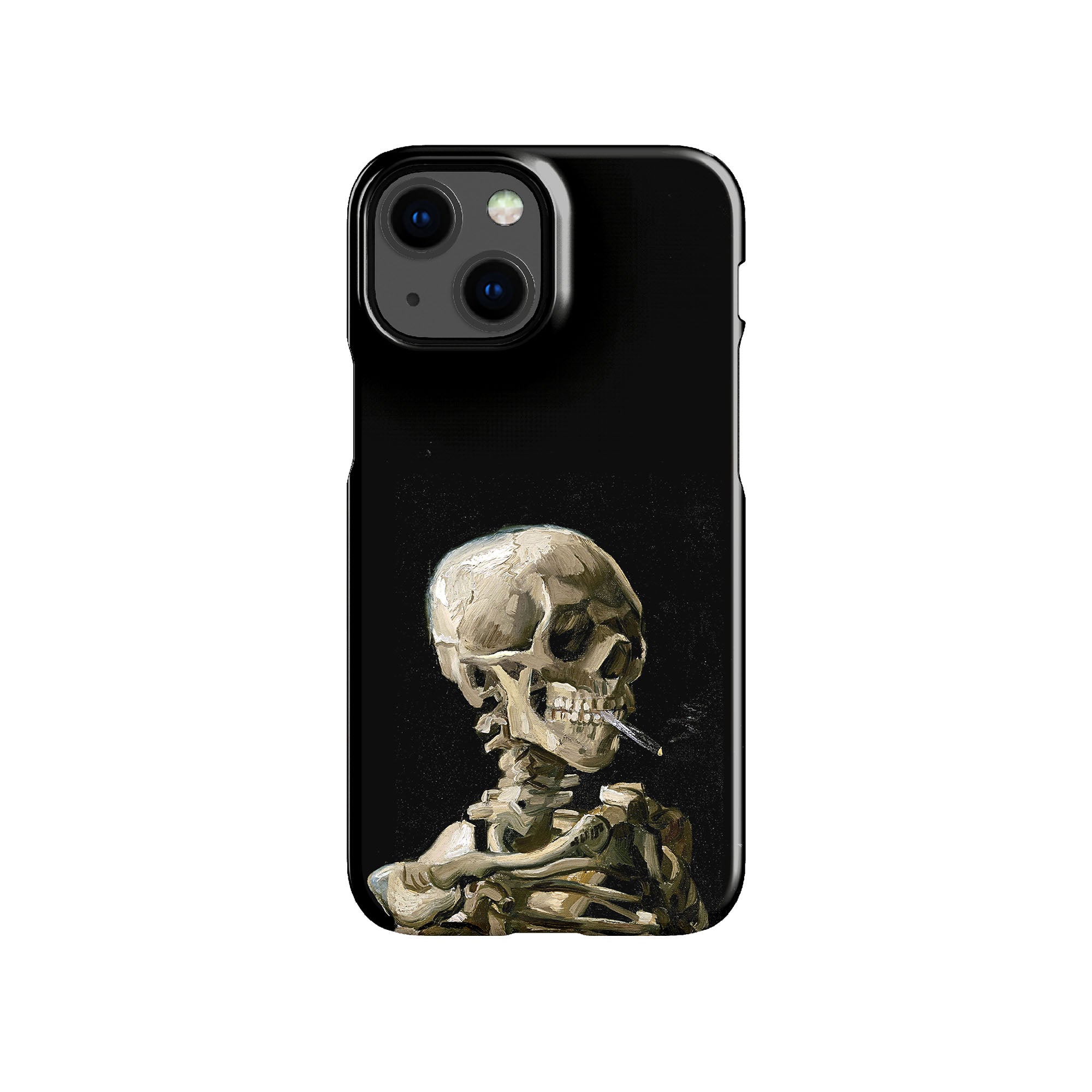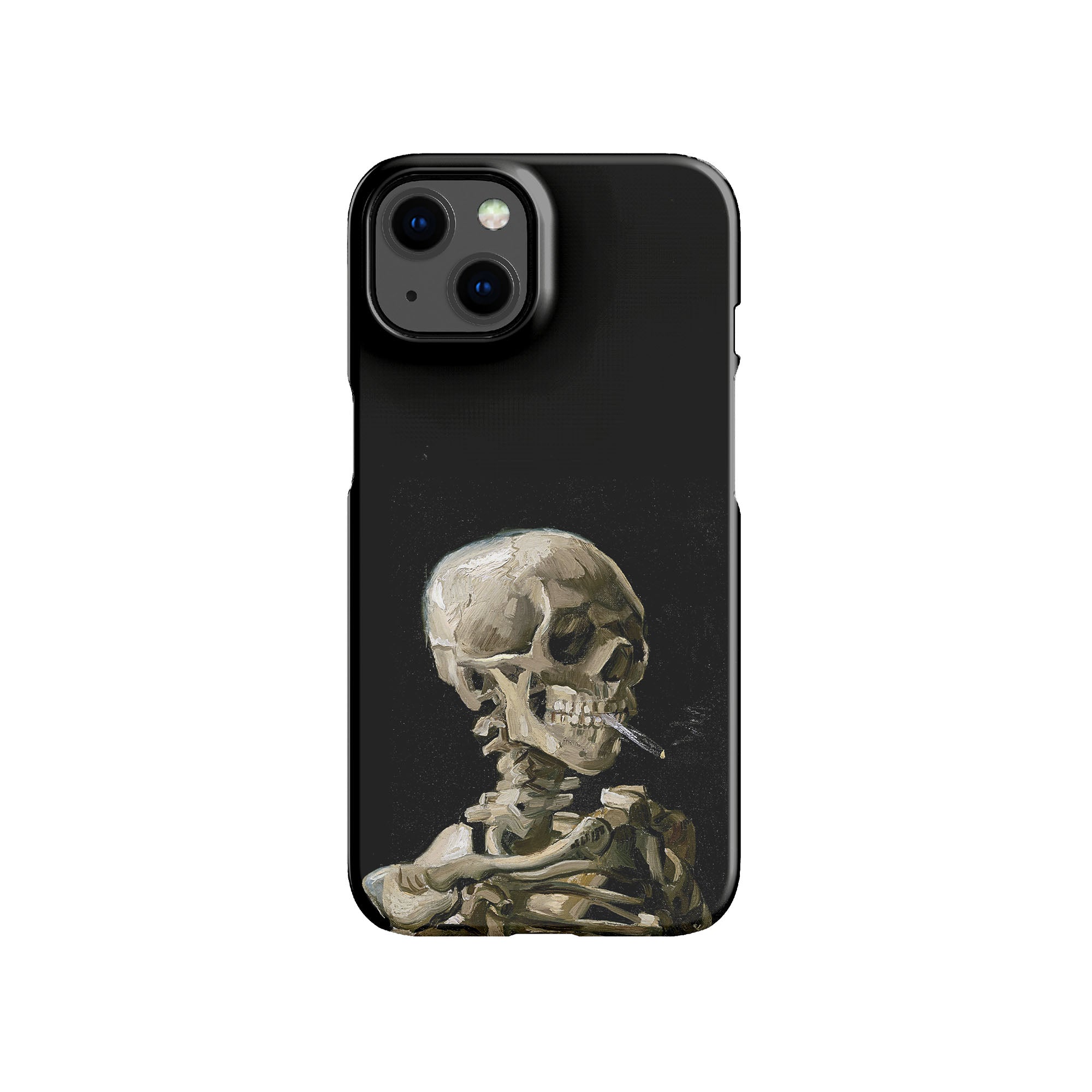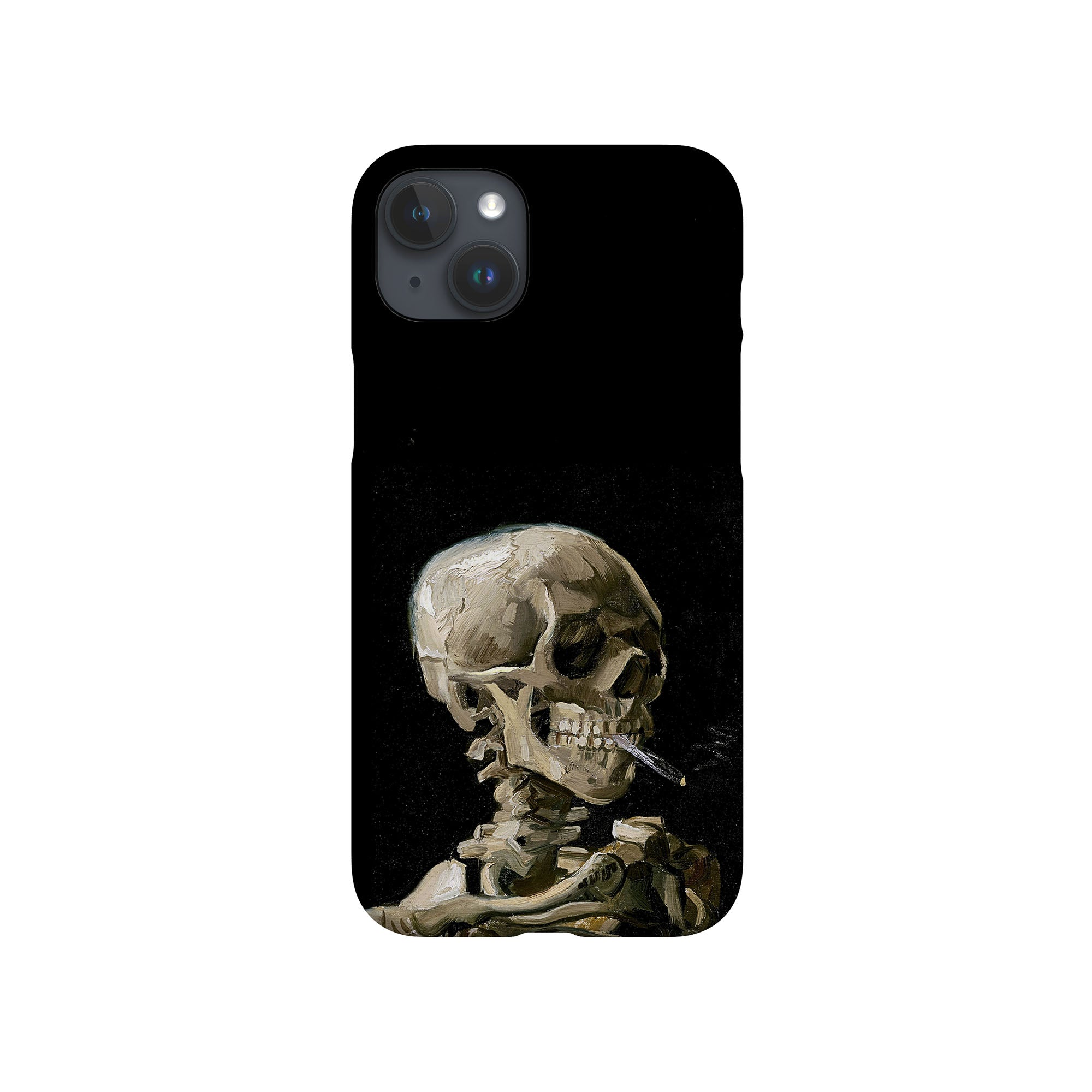 ‘Schedel van een skelet met brandende sigaret’ van Vincent van Gogh, gemaakt rond 1886-1887, is een opvallend en onconventioneel stuk. Het werd geschilderd tijdens zijn studie in Antwerpen en combineert donkere humor met een vleugje rebellie. Het terloops rokende skelet contrasteert met traditionele anatomiestudies en laat Van Goghs humor en kritiek op de rigide academische opleiding zien. De griezelige gloed van de sigaret tegen de grimmige schedel creëert een gedenkwaardig en tot nadenken stemmend beeld, dat zijn evoluerende artistieke stijl weerspiegelt.