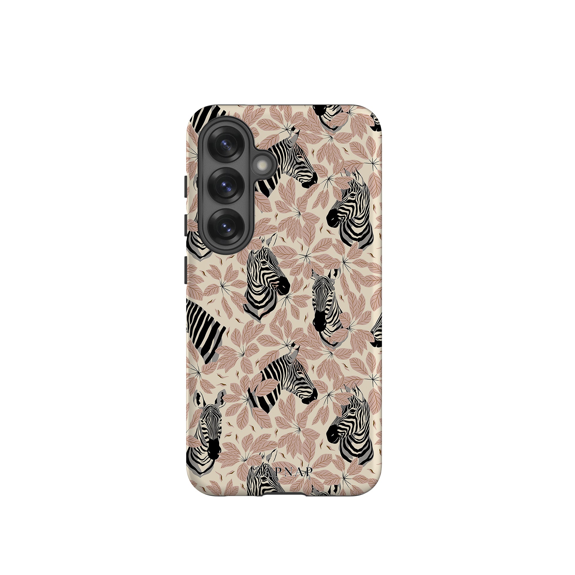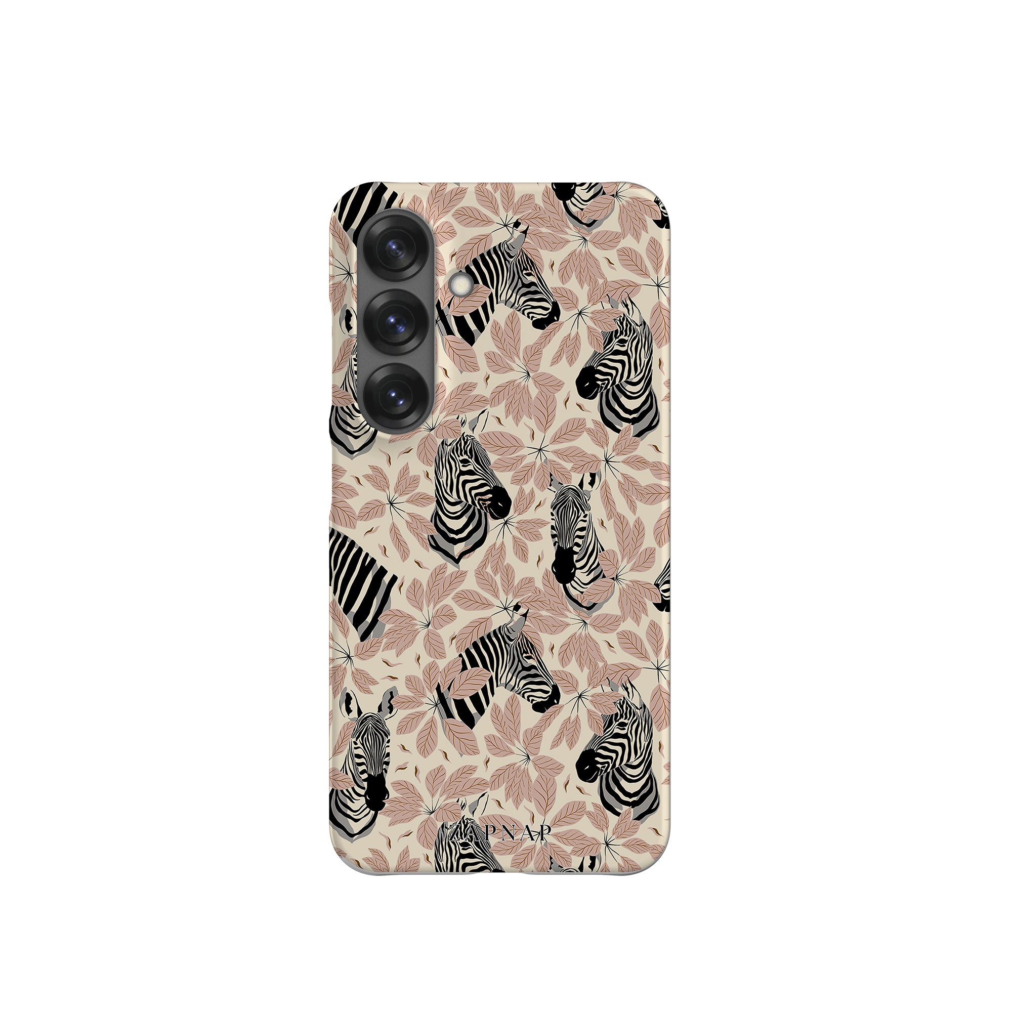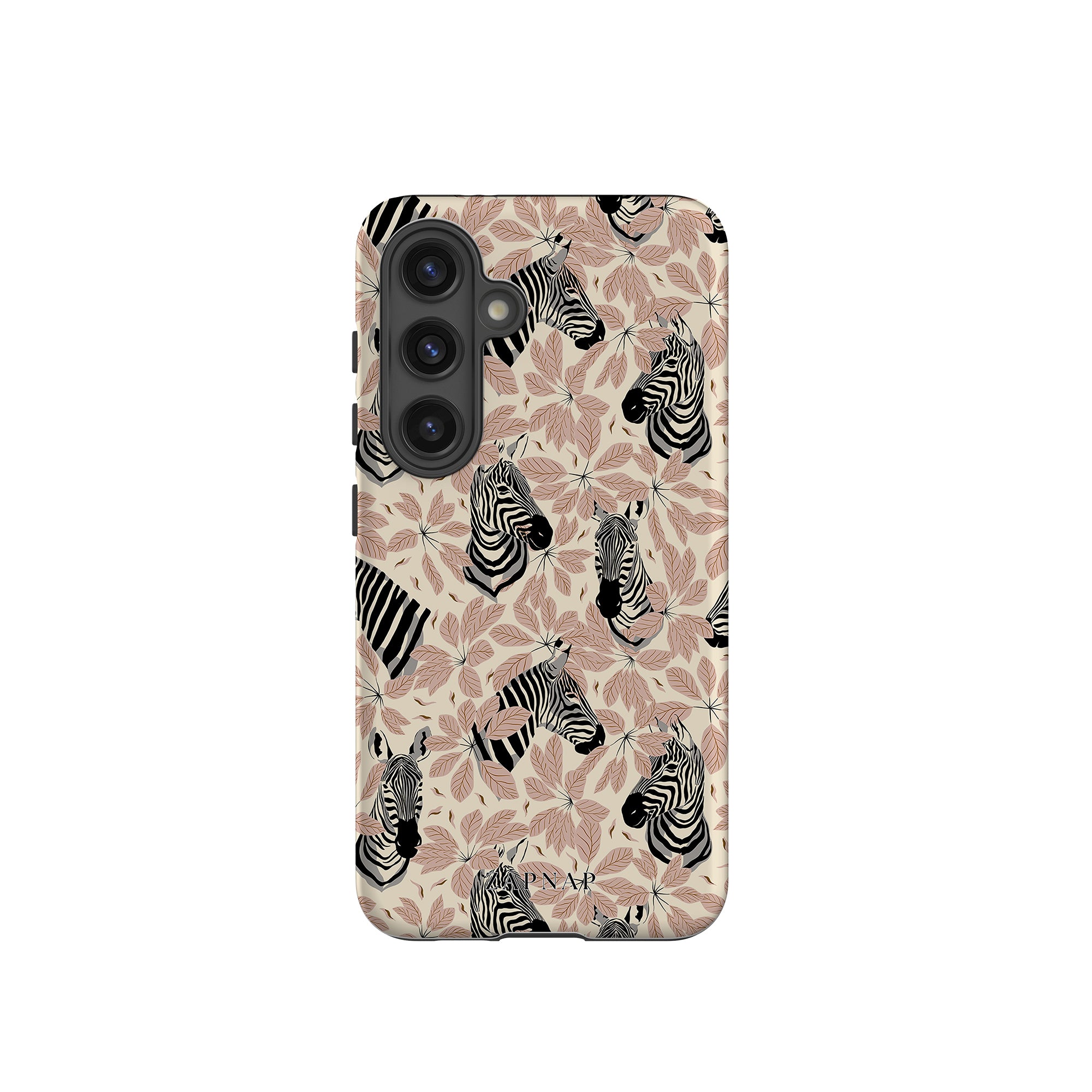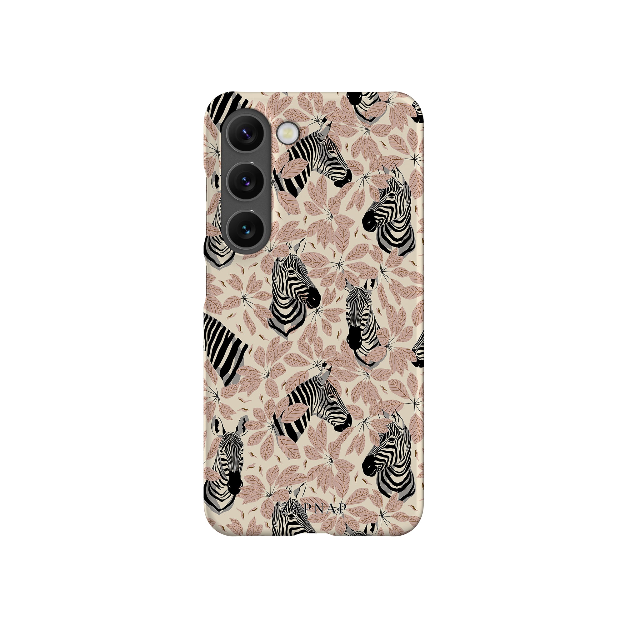 “Wild Veil” onthult een rustig tafereel waarin de gedurfde strepen van zebra’s naadloos samenvloeien met een zacht bladerdak van delicate roze bladeren. De compositie roept een gevoel van verborgen schoonheid op, alsof de patronen en kleuren van de natuur zachtjes in harmonie zijn gehuld. Het kunstwerk creëert een sfeer van stil mysterie en kalmte, waarbij de zebra's sierlijk door dit serene, dromerige landschap bewegen.