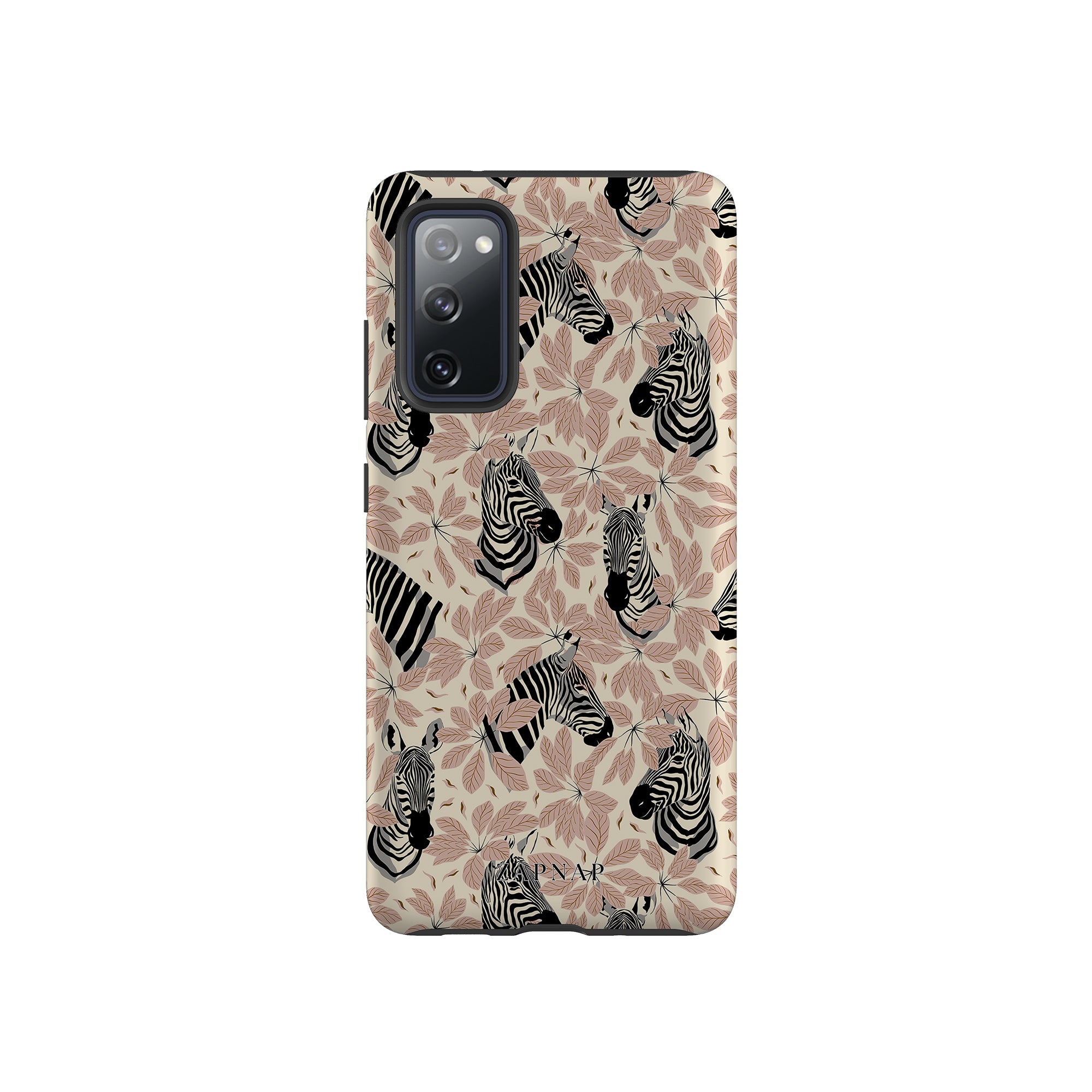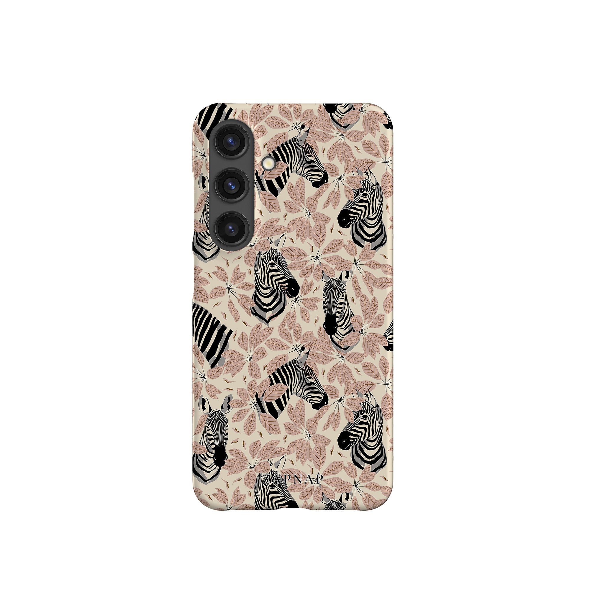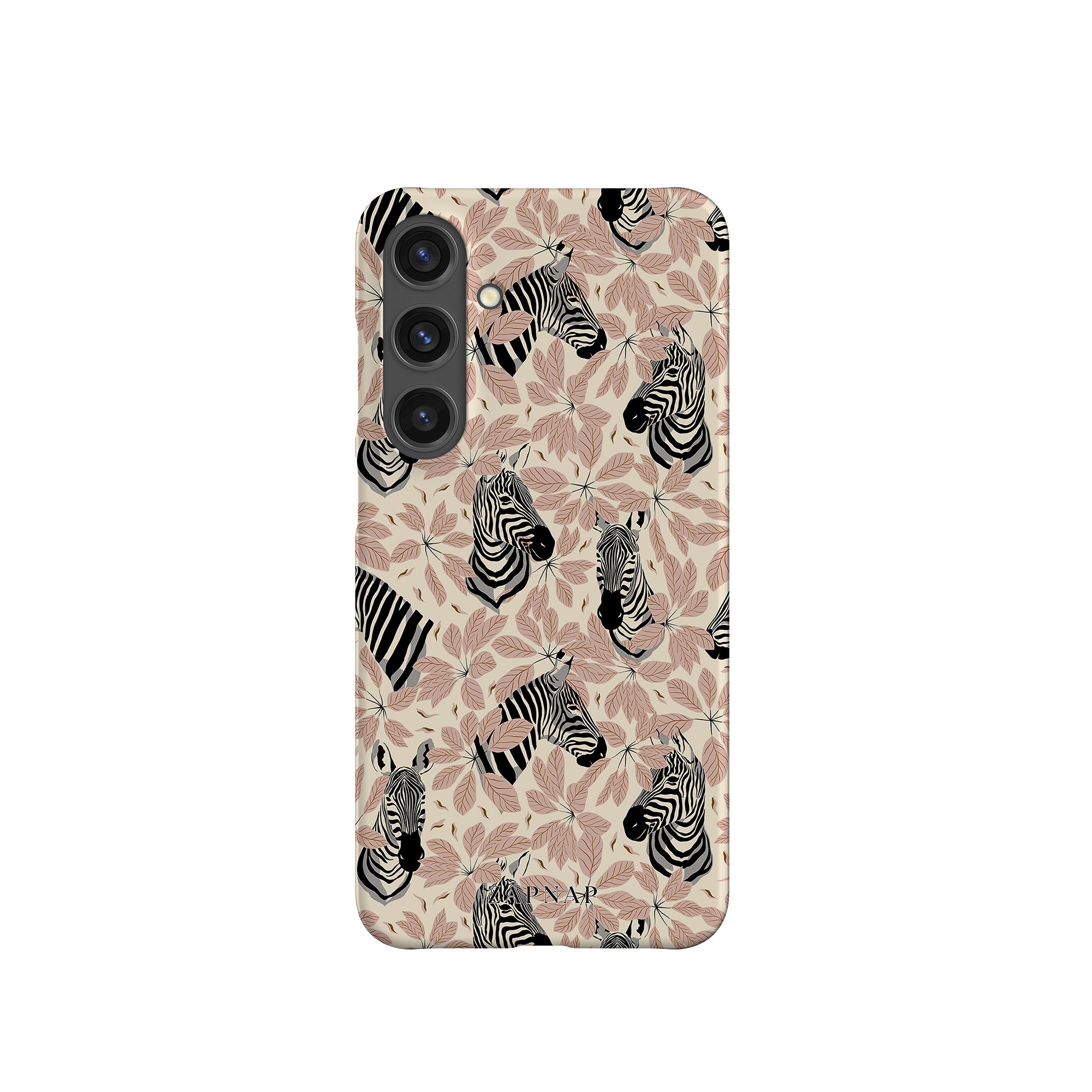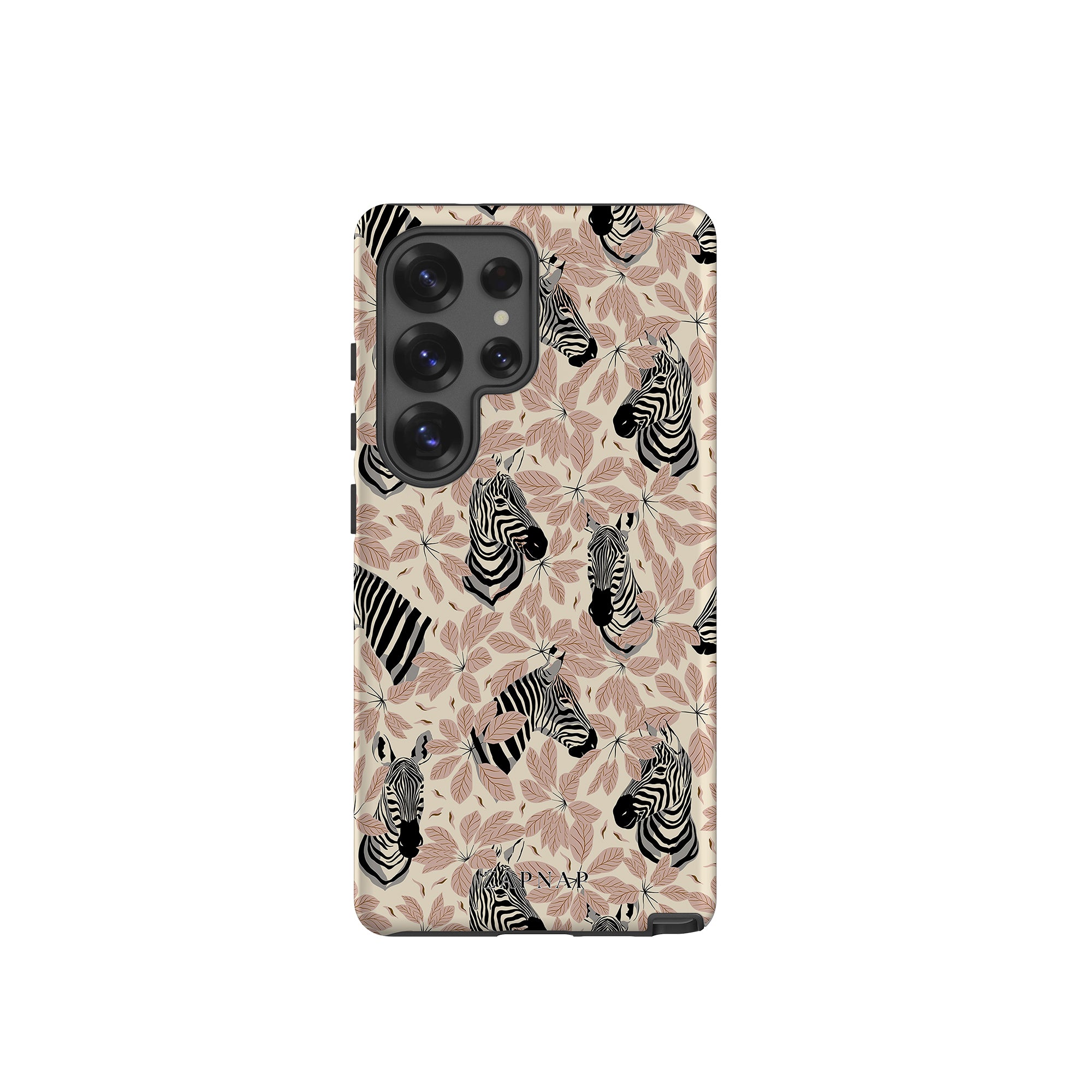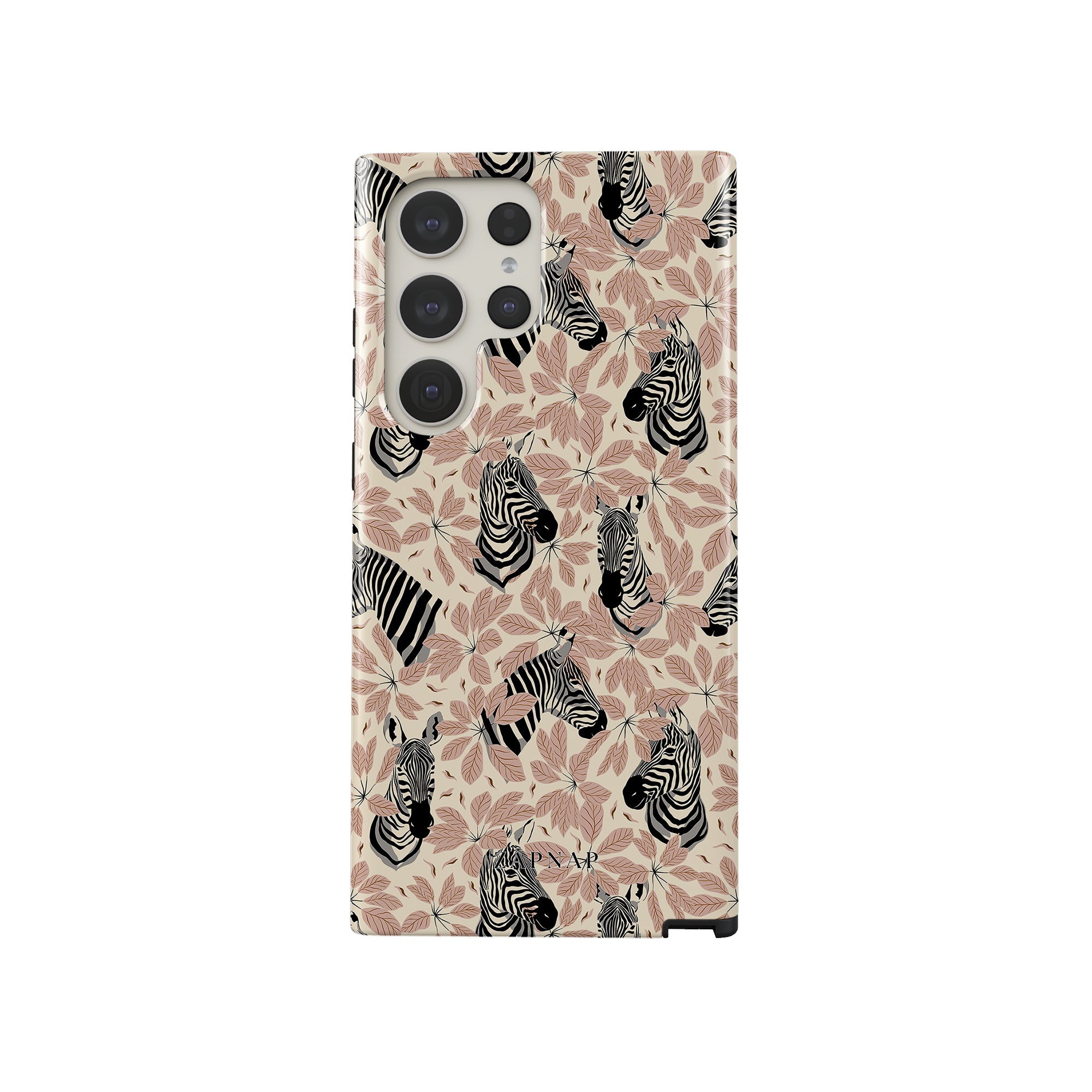 “Wild Veil” onthult een rustig tafereel waarin de gedurfde strepen van zebra’s naadloos samenvloeien met een zacht bladerdak van delicate roze bladeren. De compositie roept een gevoel van verborgen schoonheid op, alsof de patronen en kleuren van de natuur zachtjes in harmonie zijn gehuld. Het kunstwerk creëert een sfeer van stil mysterie en kalmte, waarbij de zebra's sierlijk door dit serene, dromerige landschap bewegen.