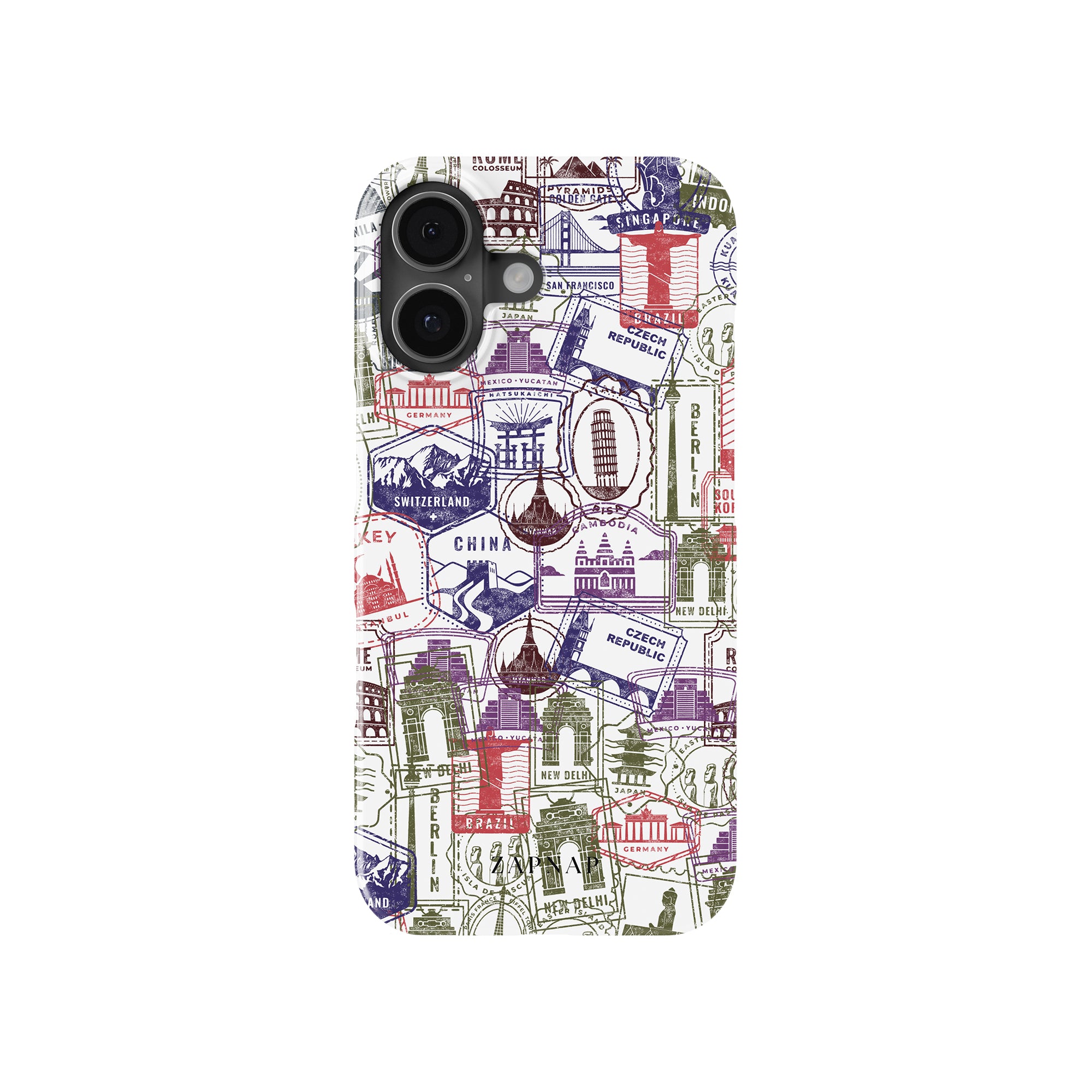 ‘World Wanderer’ weerspiegelt de geest van mondiale verkenning, met een levendige verzameling iconische bezienswaardigheden gerangschikt als postzegels op een paspoort. Elke postzegel vertegenwoordigt een unieke bestemming en nodigt de kijker uit voor een reis door continenten. Dit ontwerp is perfect voor de reisliefhebber en viert de schoonheid van reislust en de sensatie van het ontdekken van nieuwe plekken over de hele wereld.