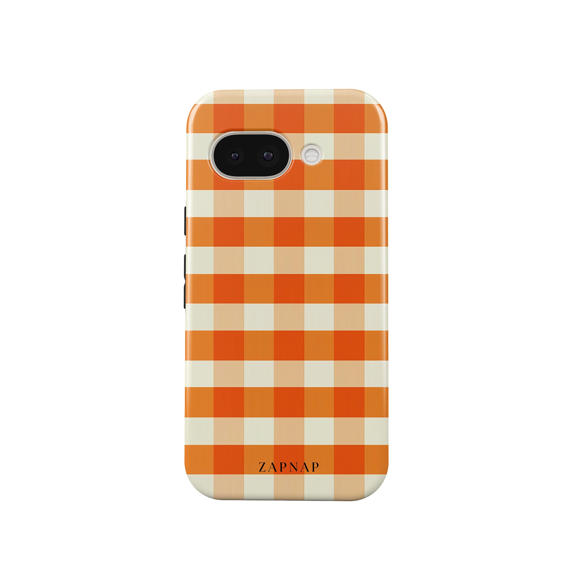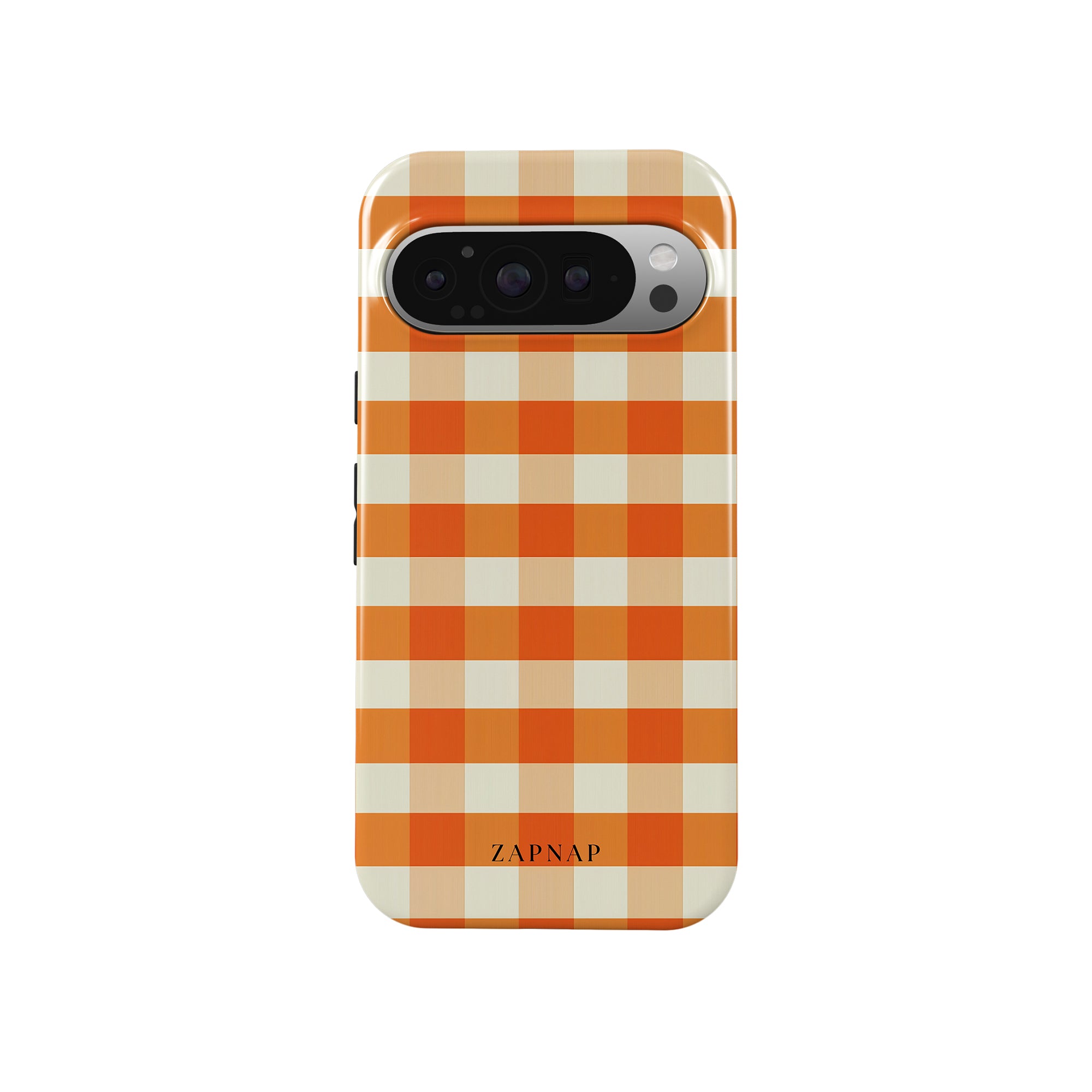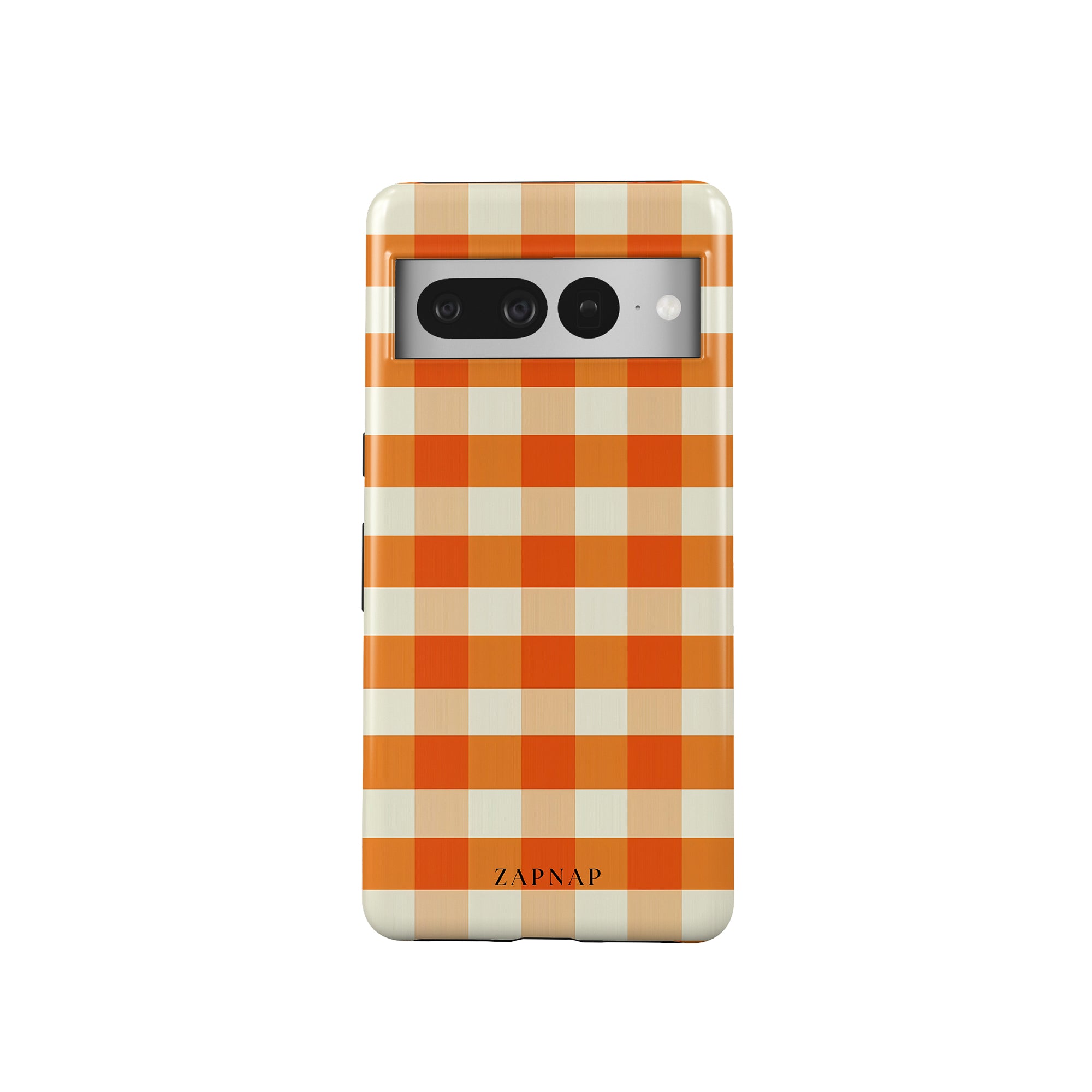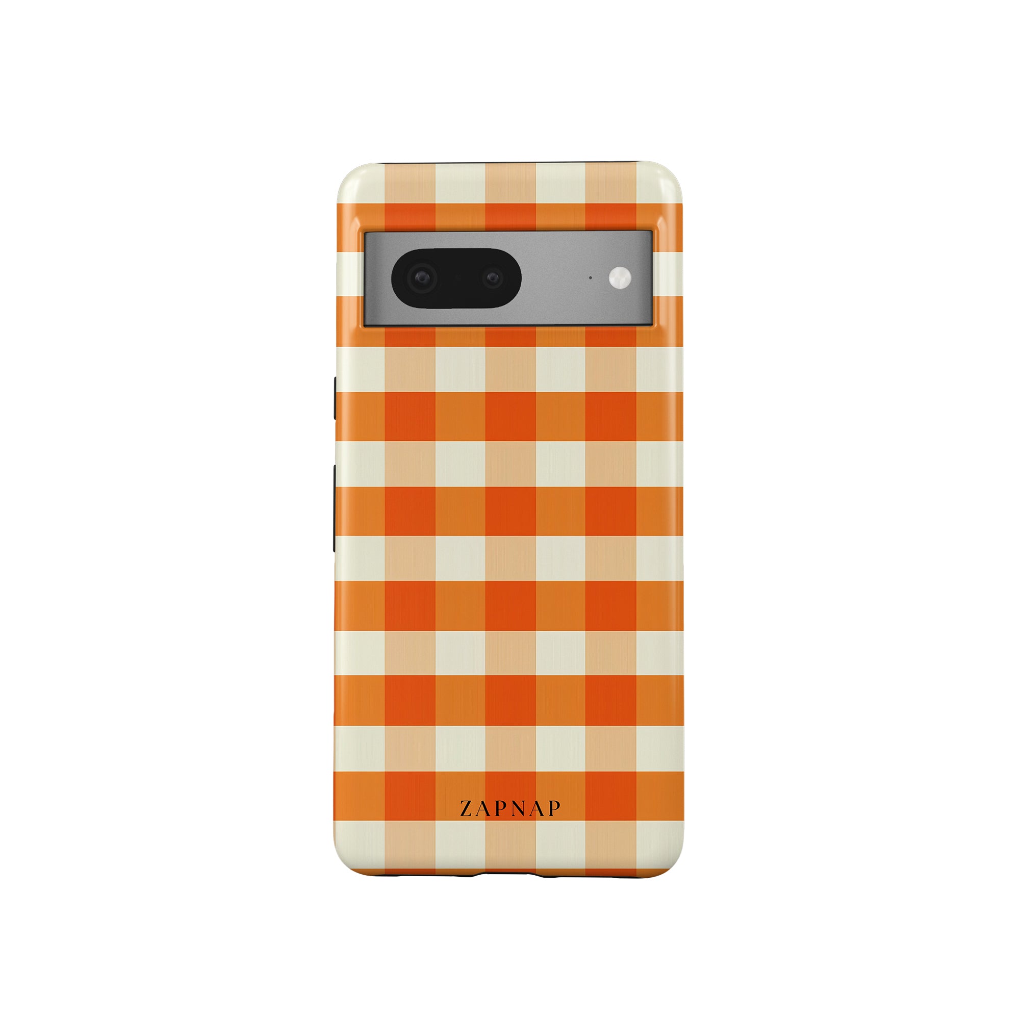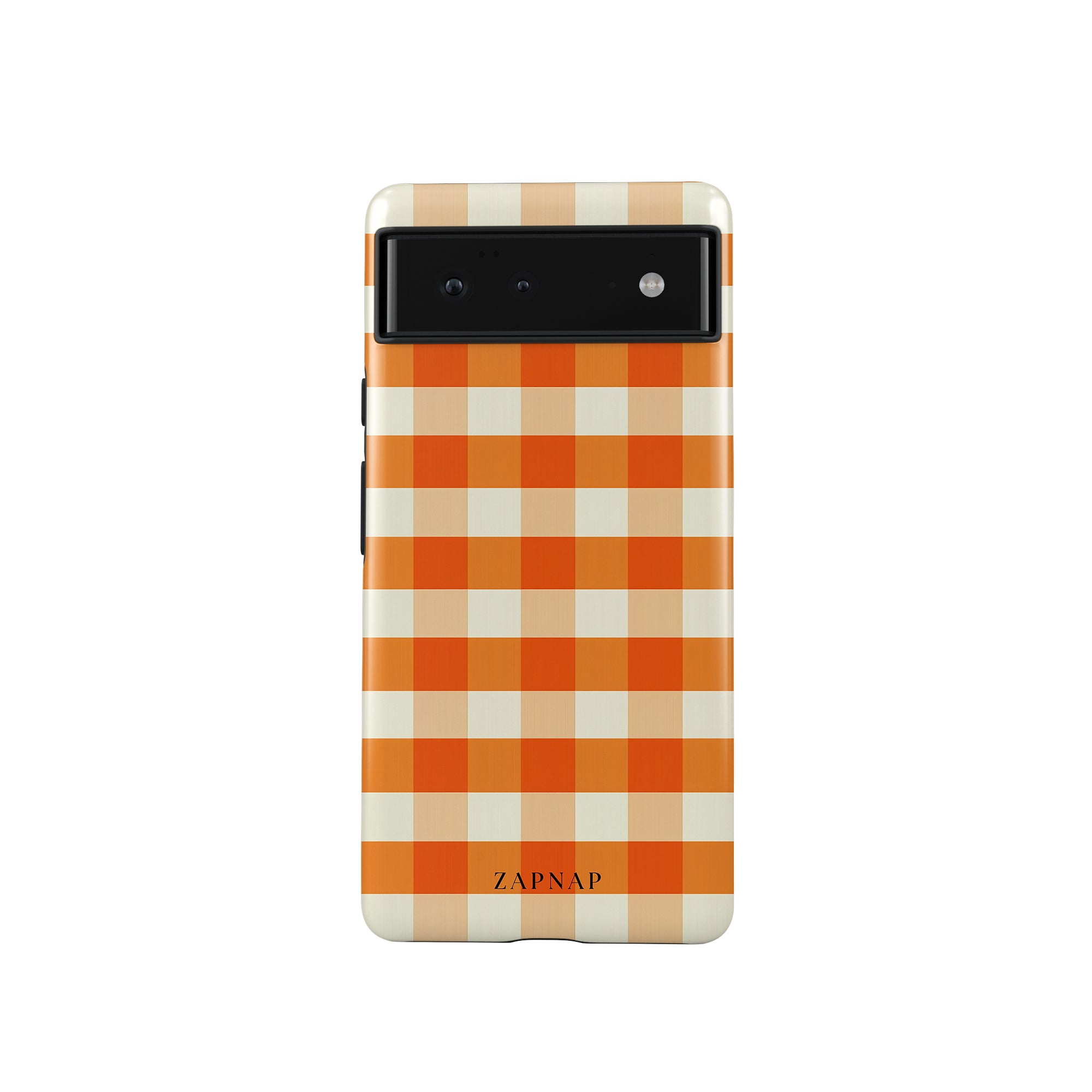 Wrap your phone in cozy fall vibes with the "Citrus Plaid" phone case. Featuring a warm and inviting checkered pattern in shades of vibrant orange and soft beige, this design is perfect for lovers of classic patterns with a seasonal twist. Whether you're heading into cooler weather or simply want to keep things stylishly rustic, this case provides both protection and charm